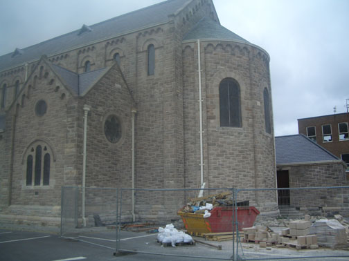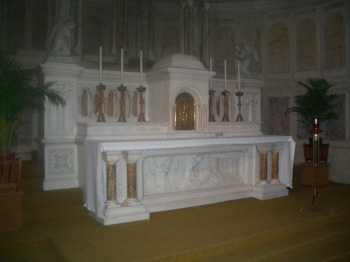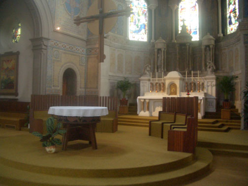 Vatican II wooden altar and Grogory's altar, now a backdrop.